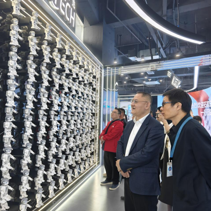 随后,宋书记一行参观了优必选产品展厅,了解了该公司的企业文化、发展现状及校企合作建设情况。下午,马不停蹄地赴深圳技师学院进行了考察学习,参观了信息与通信学院的服务机器人应用技术产业项目实训室、职业技能等级认定实操考场和考核站点,详细了解了当前人工智能专业在技工院校尤其是技师学院的发展前景。
