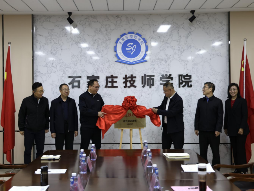 签约仪式后,双方进行了授牌仪式并合影留念。此次签约仪式的圆满成功,标志着我院产教融合发展取得了新硕果、迈出了新步伐。石家庄技师学院将以此为新起点,进一步聚焦省会五大主导产业发展需要,着力培养更多高质量技能人才和大国工匠,努力为建设现代化国际化美丽省会城市贡献更大力量!
