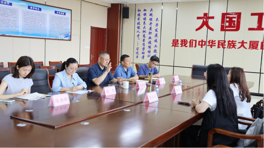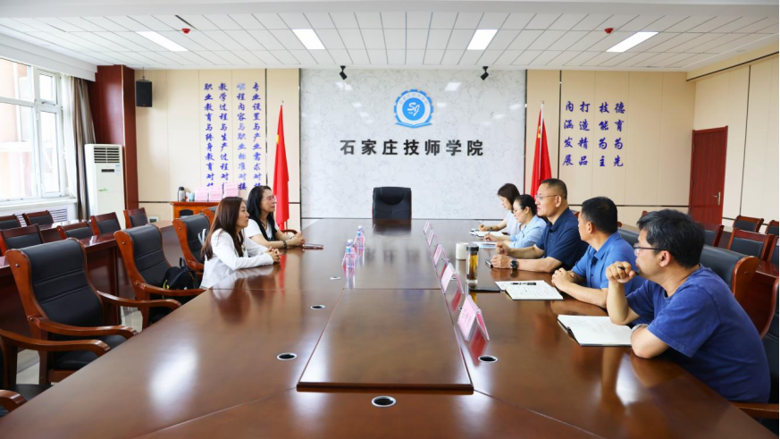 2025年6月18日下午,德国河北商会会长、德国莱茵集团董事长房心如,德国优帕有限责任公司董事长河北省女企业家协会常务副会长董文欣来石家庄技师学院洽谈中德校企合作事宜。